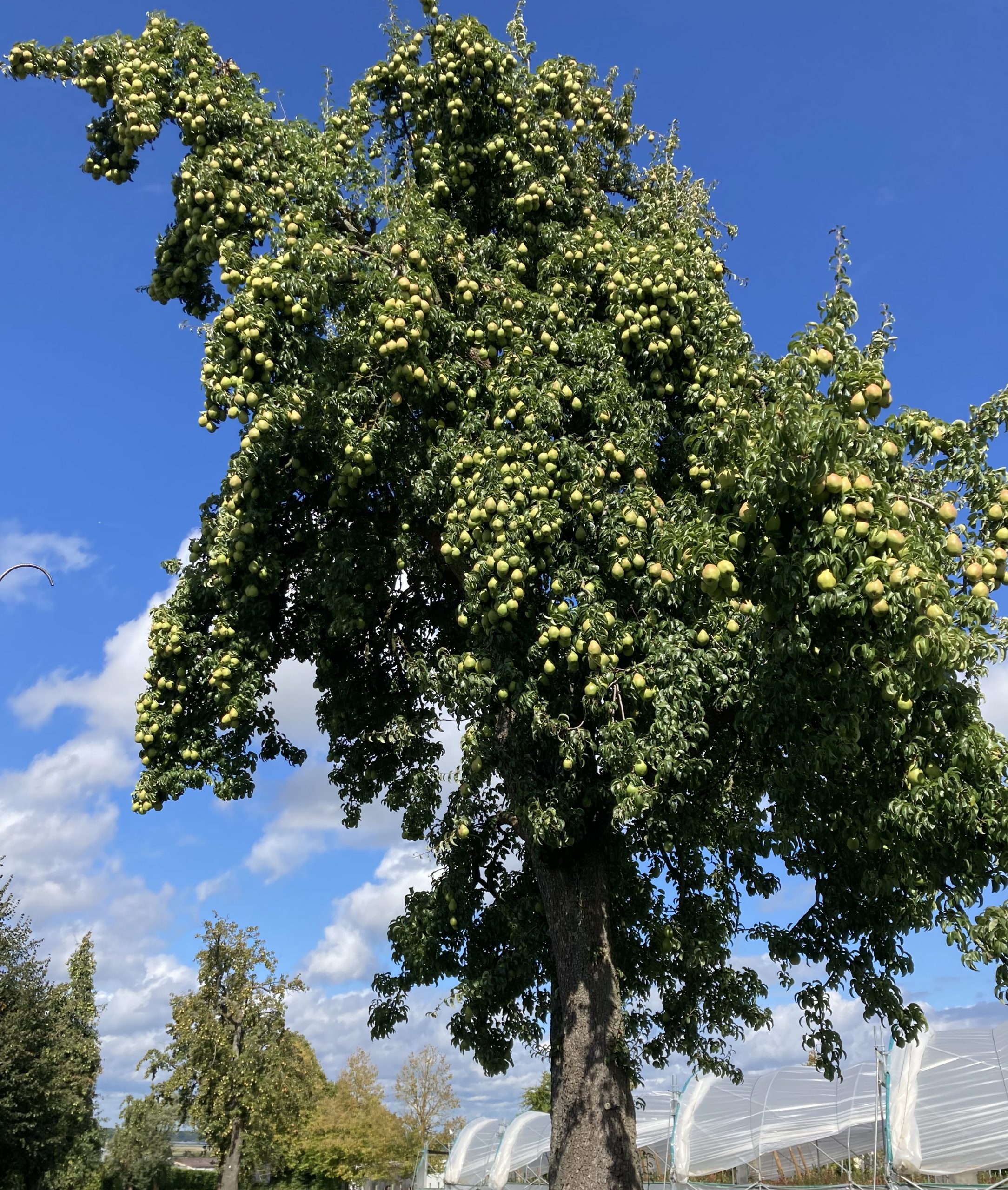 Der sehr beliebte Birnensaft war schon früh in diesem Jahr ausverkauft. Die gute Nachricht ist, dass die aktuelle Ernte ungefähr dreimal so hoch ausgefallen ist wie die Ernte im letzten Jahr. Jetzt ist der Birnensaft aus der Mosterei im Lager angekommen. Es ist also genug Birnensaft da, um die eigenen Bestände wieder aufzustocken.